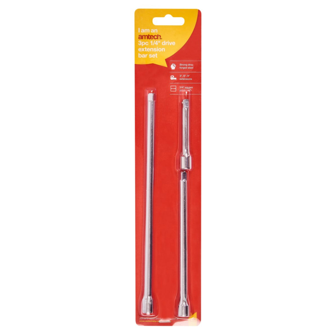 - VERSATILE: This 6mm (1/4") short extension bar set is ideal for use in confined spaces and includes extension sizes 75mm (3"), 150mm (6") and 225mm (9")