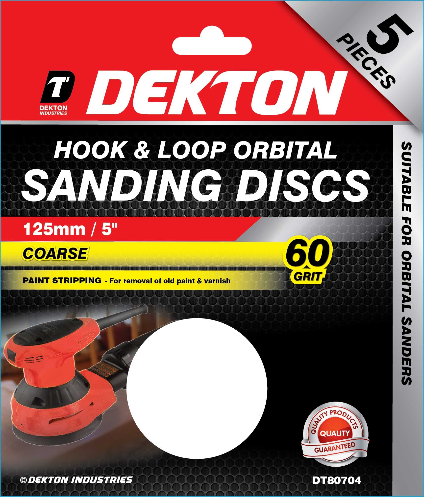 DEKTON 125MM HOOK & LOOP ORBITAL SANDING DISCS 5 PACK 60 GRIT