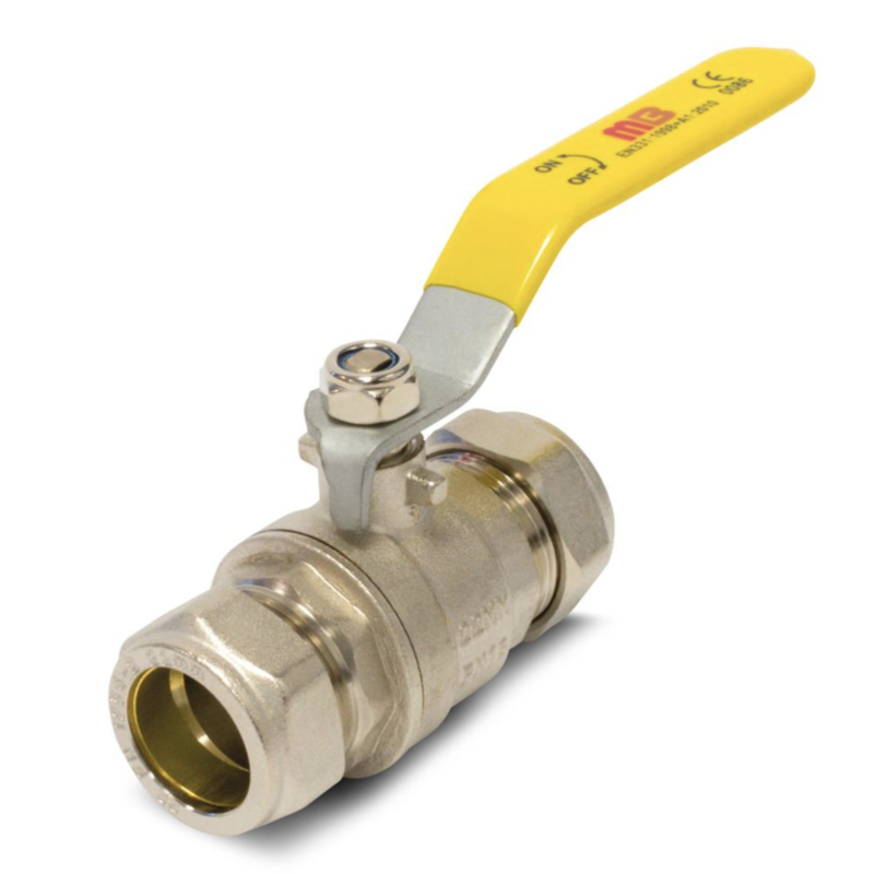 Lever Ball Valve Yellow Handle Gas 15/22MM